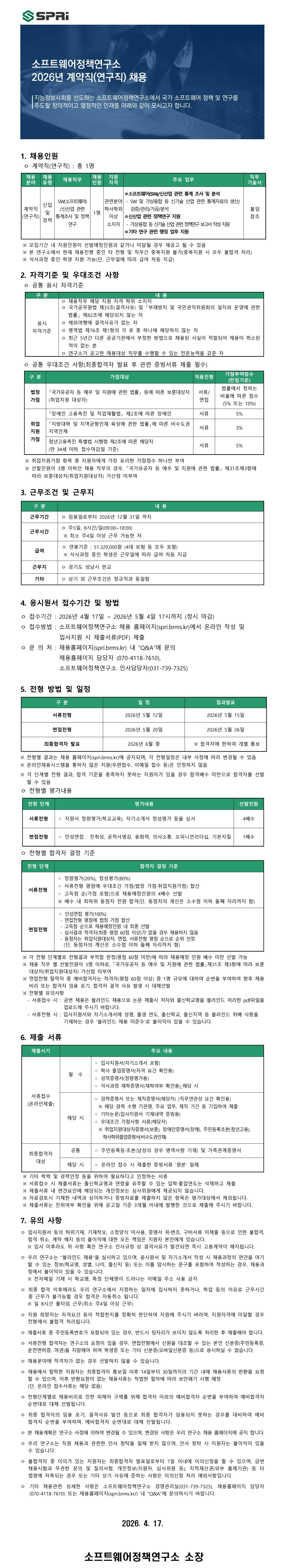 소프트웨어정책연구소 2026년 계약직(연구직) 채용